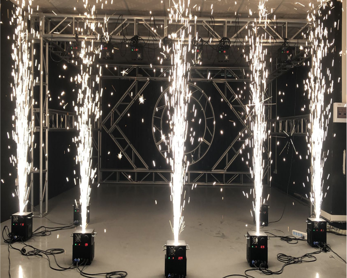 A Cold Spark Machine is a pyrotechnic effect generator designed for creating dramatic, vertical fountains of brilliant white sparks. It utilizes a proprietary spark material, often in granular or pellet form.